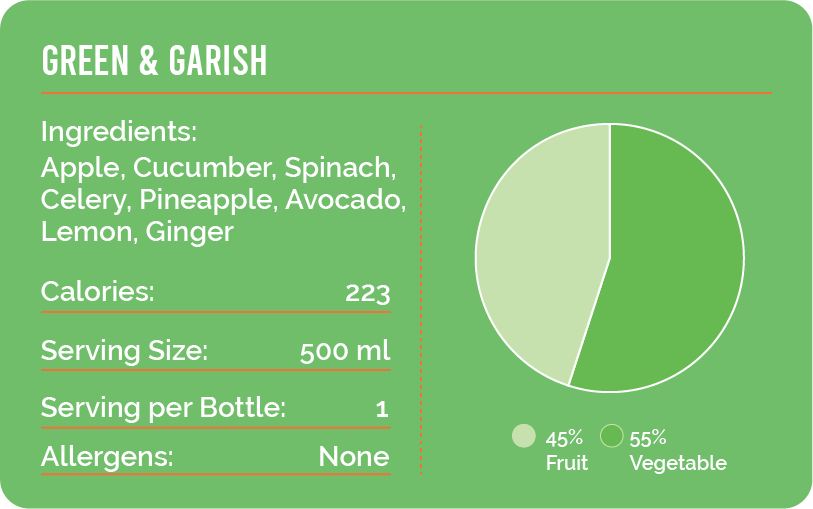 Apple, Avocado, Celery, Cucumber, Ginger, Lemon, Pineapple