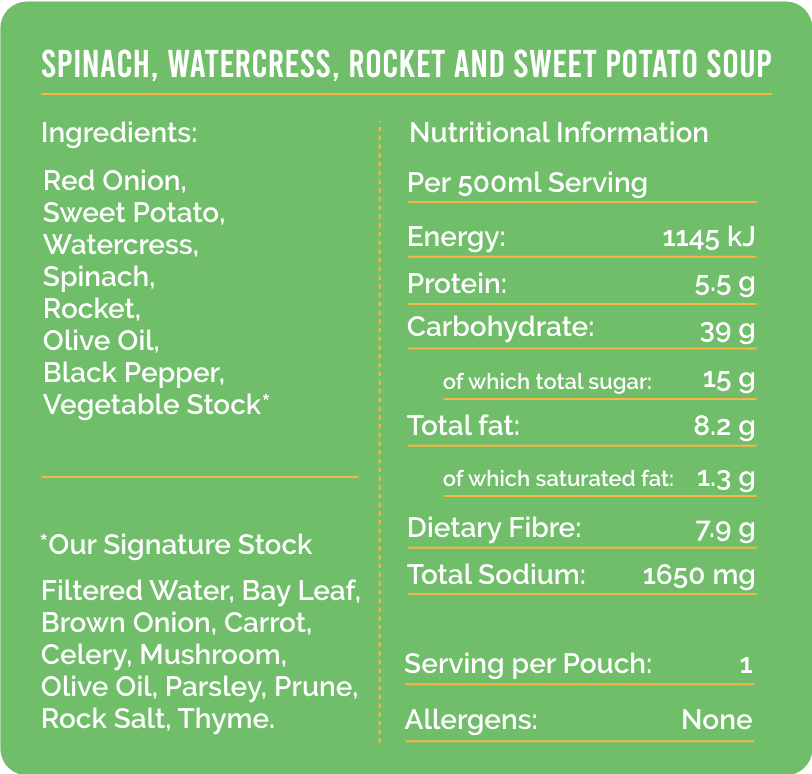 Spinach, Watercress, Rocket & Sweet Potato Soup quantity